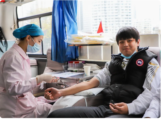 上午9點30分,參與獻血的同志們熱情高漲,在醫務人員的引導下,依次進行登記填表、測量血壓、抽血化驗。室外寒風凜凜,冬雨刺骨;獻血車內愛心涌動,暖意濃濃。獻血人員工中,既有多次參加無償獻血的老同志,也有首次參加無償獻血的員工。大家紛紛聊起自己第一次獻血的經歷,為初次獻血的同志們緩解了緊張情緒。部分同志因身體原因,在獻血中出現短暫的不適現象,但他們依然帶著笑容,堅持獻出自己的愛心。本次無償獻血公益活動共有30多名職工積極報名參與,當天參加獻血的16名員工共獻血5800毫升。