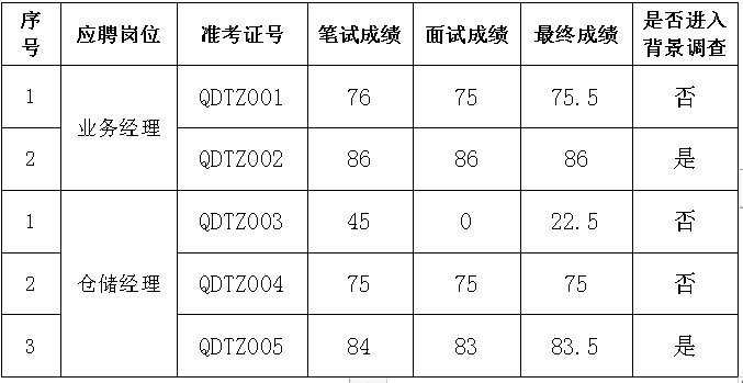 根據威海齊東投資有限公司招聘方案和招聘計劃,現將2024年3月26日勞務派遣制員工招聘結果公布如下: