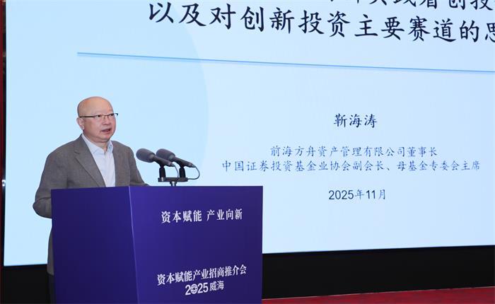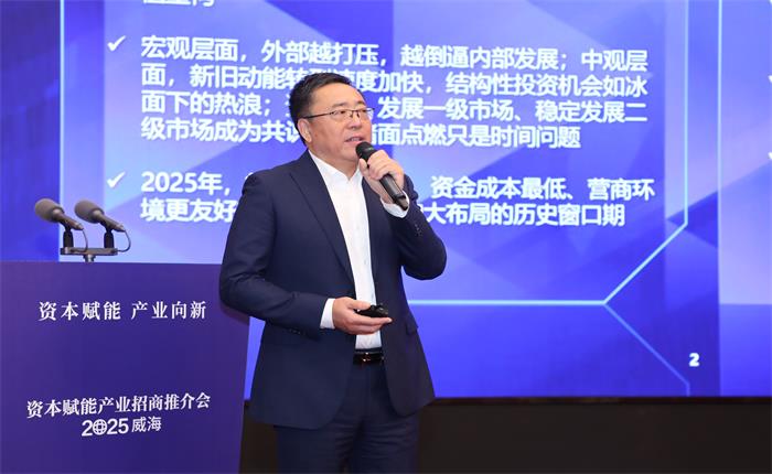 投資機(jī)構(gòu)威海“論劍” 資本助力產(chǎn)業(yè)突圍。11月5日,“資本賦能產(chǎn)業(yè)招商推介會(huì)·2025威海”在東山賓館成功舉行,來(lái)自國(guó)內(nèi)有影響力的頭部投資機(jī)構(gòu)、券商、金融機(jī)構(gòu)和優(yōu)秀企業(yè)的近200位嘉賓相聚威海,與威海各區(qū)市和企業(yè)牽手尋求資本賦能產(chǎn)業(yè)發(fā)展新機(jī)遇。市委副書(shū)記、市長(zhǎng)孔凡萍,中國(guó)國(guó)際金融股份有限公司管理委員會(huì)成員胡長(zhǎng)生,前海方舟資產(chǎn)管理有限公司董事長(zhǎng)靳海濤,江蘇毅達(dá)股權(quán)投資基金管理有限公司董事長(zhǎng)、創(chuàng)始合伙人應(yīng)文祿,山東省國(guó)資委副主任周洪文,中國(guó)銀行山東省分行副行長(zhǎng)薛冬出席會(huì)議,孔凡萍、胡長(zhǎng)生、薛冬致辭,市委常委、常務(wù)副市長(zhǎng)李建主持。